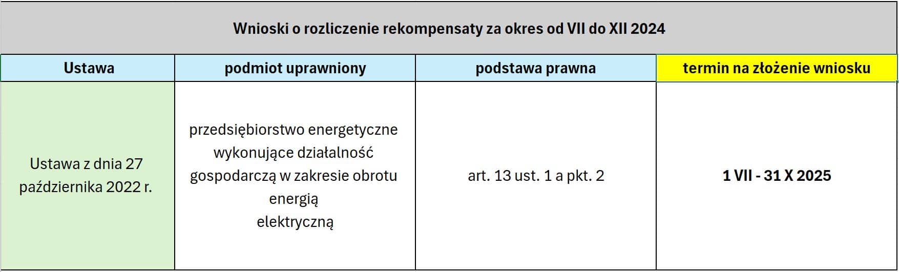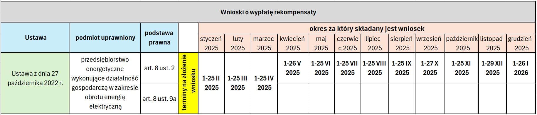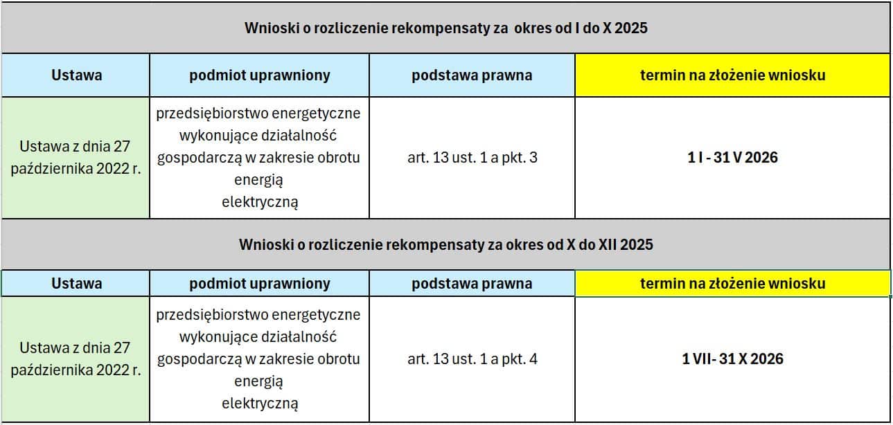 AKTUALIZACJA Terminów składania wniosków przez Sprzedawców energii i OSD w związku z zamrożeniem cen za energię elektryczną lub stosowaniem ceny maksymalnej w rozliczeniach z odbiorami uprawnionymi